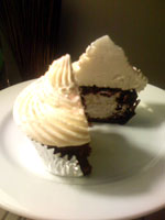 Fill cupcake liners to half way and bake in the middle of the oven for 30 minutes. Cool the cupcakes on racks. Make these cupcakes one day in advance and let them sit overnight at room temperature before frosting. The cake gets better after a day.
